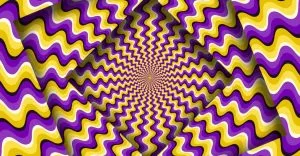 Physiological illusions occur when the brain’s visual system becomes overstimulated and confused by light, movement, shapes, colors, positions, or contrast. In the example below, the colors, shapes, and patterns give the appearance of movement, even though the image is static.